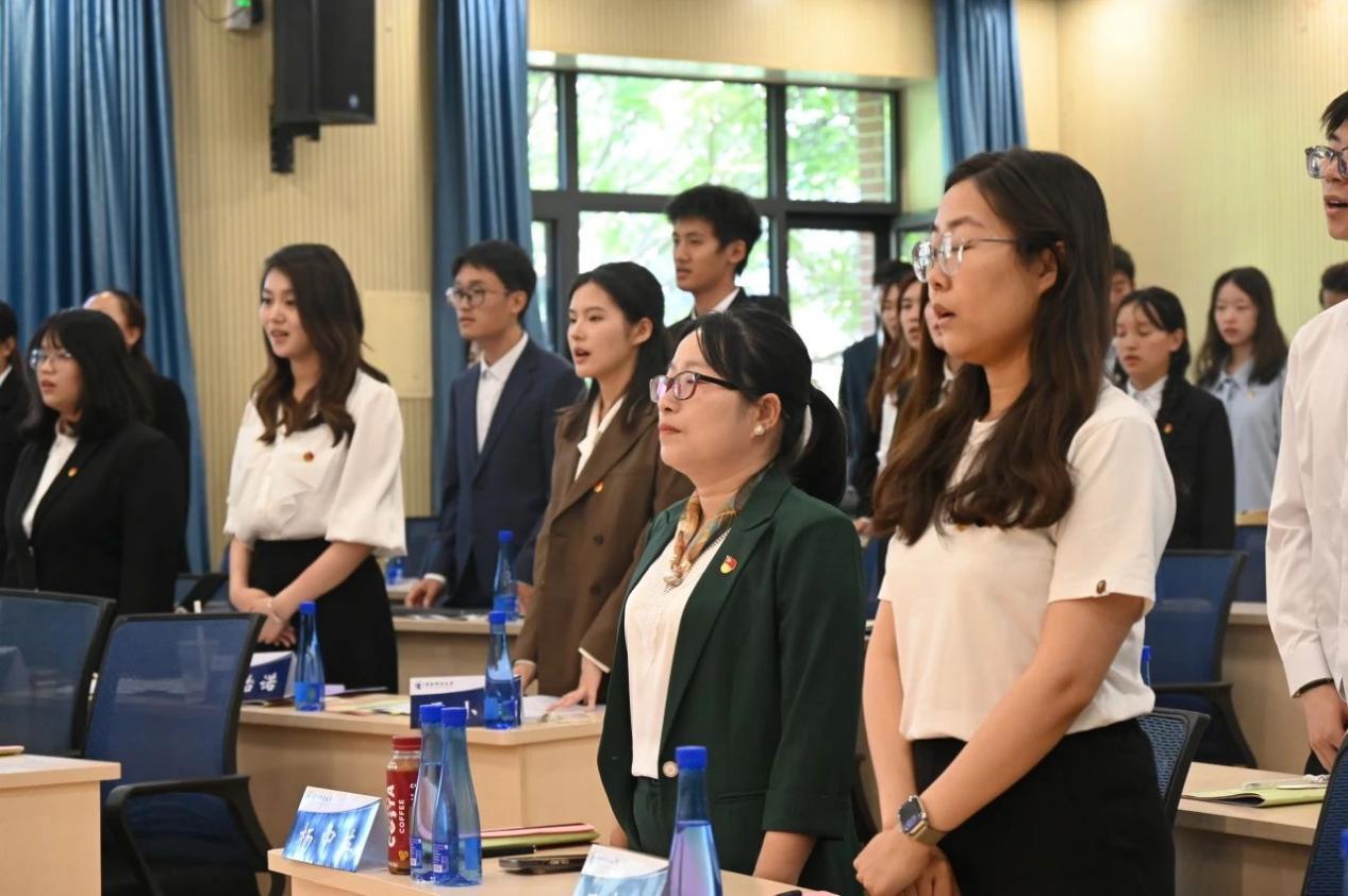 中央财经大学商学院2025年学生代表大会于6月8日隆重召开,商学院党委副书记杨中英、商学院团委书记王惠婷应邀出席大会,同时来自商学院各班级、院学生会各部门、挂靠社团与学生团队的46名学生代表参加本次大会,会议由商学院团委副书记刘柏江主持。