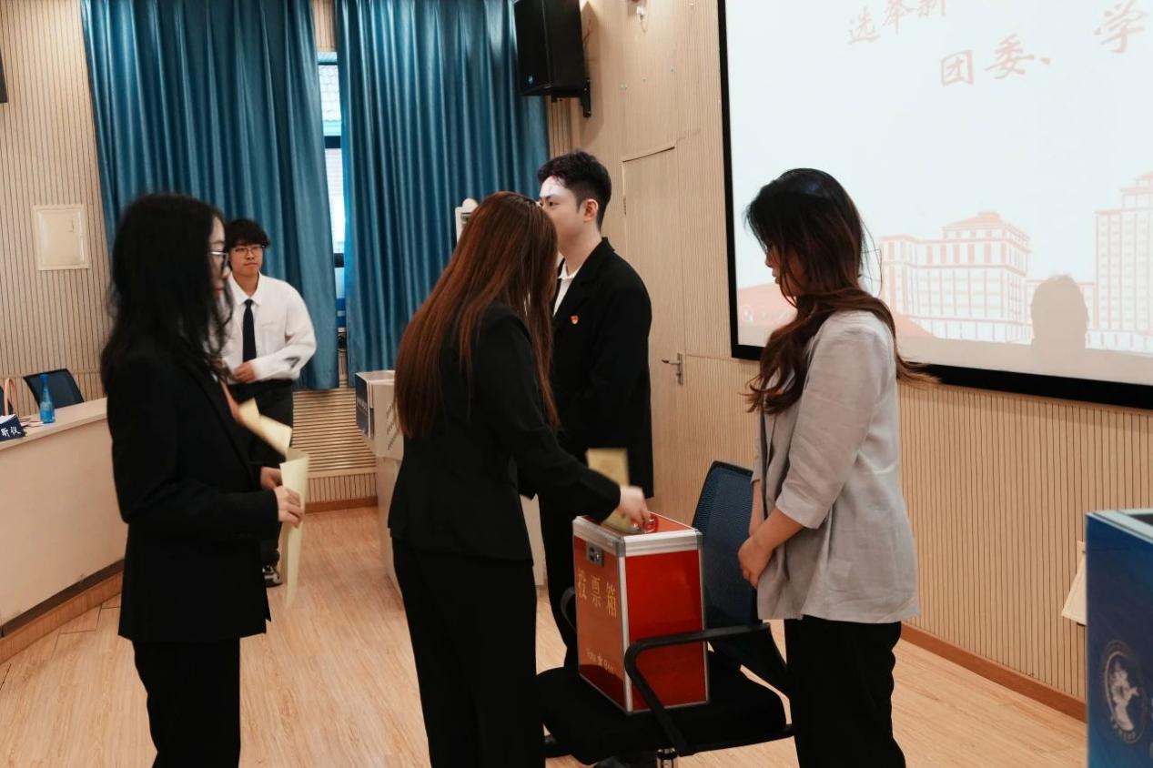 在大会审议并一致通过《中央财经大学商学院2025年学生代表大会选举办法(草案)》及监票人、计票人名单后。5名主席团候选人依次登台发表竞选演讲。他们结合个人丰富的校园经历与学生工作实践,分享了履职设想,承诺将更主动联系同学、聚焦实际需求、恪尽职守,并郑重承诺未来将深入同学、精准对接需求、全力履职担当。演讲中,候选人还立足实践,阐述了对学生会未来发展的创新思路和具体规划,提出了富有建设性的未来工作构想,展现了深刻的思考。最终,大会经无记名投票,选举产生王小瑞、成怡诺、刘昕冉、范泽晨、谢艺璇为中央财经大学商学院新一届团委、学生会主席团成员。