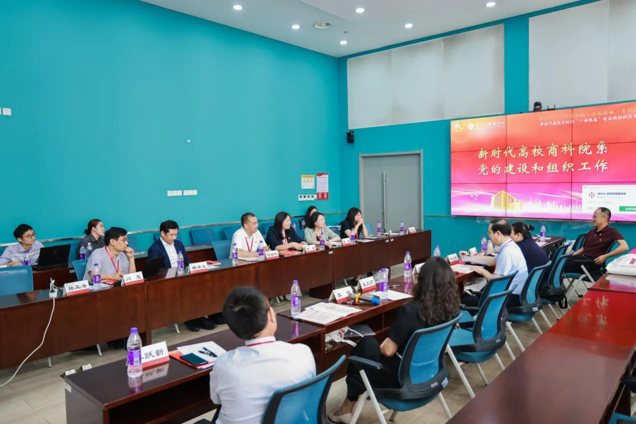 作为大会发起单位之一,中央财经大学商学院受邀出席本次大会。商学院党委书记李跃新与参会兄弟高校分享商科高校党建工作经验,并主持6月13日下午召开的第一分论坛。该分论坛以“新时代高校商科院系党的建设和组织工作”为主题,聚焦组织力提升、规范化建设强化与组织育人路径创新等核心命题展开交流研讨。