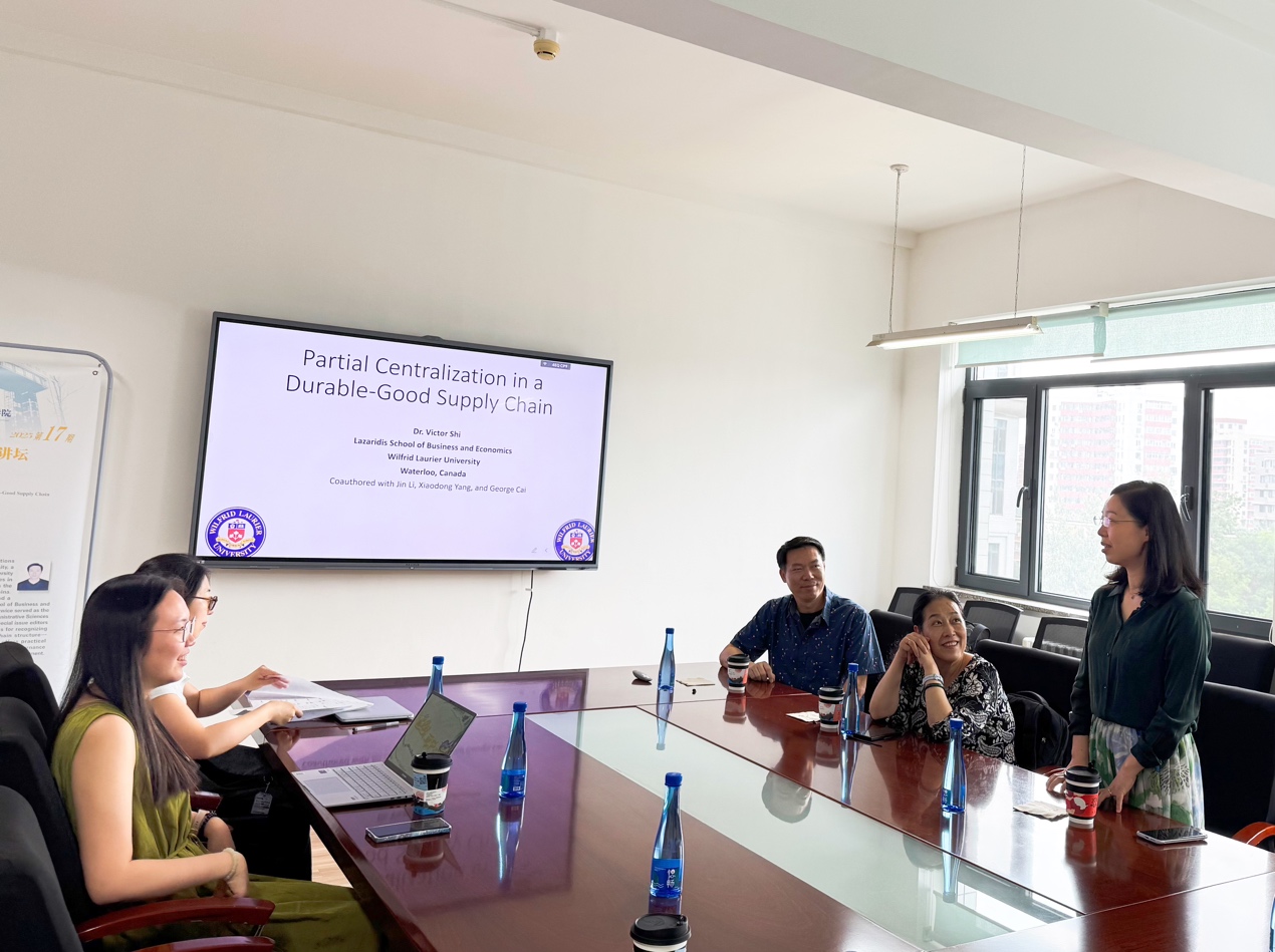 会议由中央财经大学商学院供应链管理系教授晏妮娜老师主持。在讲座开始前,晏老师简要介绍了chunming shi老师的履历。施春明博士拥有美国华盛顿州立大学运营管理博士学位、国立大学工程硕士学位,以及中国科学技术大学工程与工商管理双学士学位。他现任加拿大威尔弗里德·劳里埃大学拉扎里迪斯商学院的终身教授及博士生导师。施博士曾两次担任加拿大行政科学协会(administrative sciences association of canada)管理科学分会主席,并曾担任多本顶级学术期刊的特刊主编。