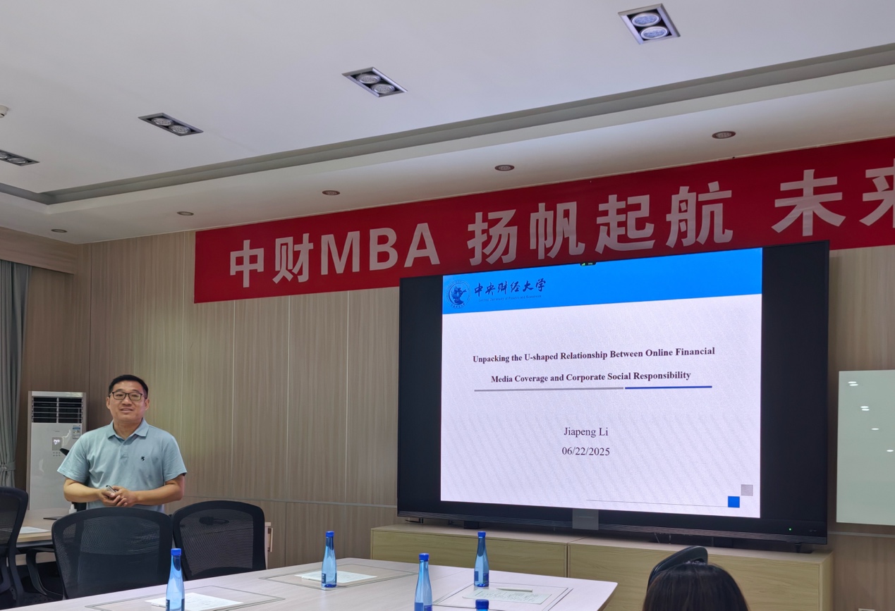 2025年6月23日,中央财经大学商学院成功主办的第二届高质量发展财经论坛在mba教育中心顺利召开。中央财经大学、英国杜伦大学、西悉尼大学三校的学者深入探讨企业社会责任与可持续发展、创新创业与高质量发展等领域的热点话题,旨在推动工商管理学科前沿研究,为经济高质量发展贡献智慧。中央财经大学商学院师生30余人参加了本次论坛。商学院市场营销系主任顾雷雷教授主持了论坛。