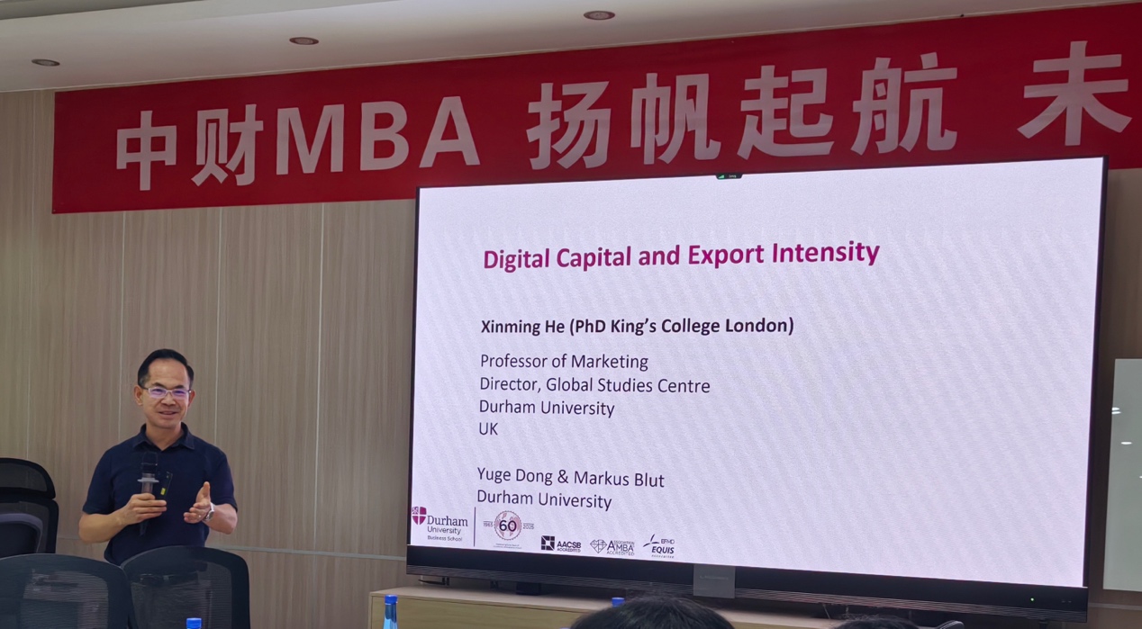 英国杜伦大学何新明教授分享主题演讲《digital capital and export performance》,研究发现企业数字资产与出口强度呈现负向关系,揭示了数字资产的双重属性,为中国企业数字资产配置并在国际市场上释放其潜力提供启示。