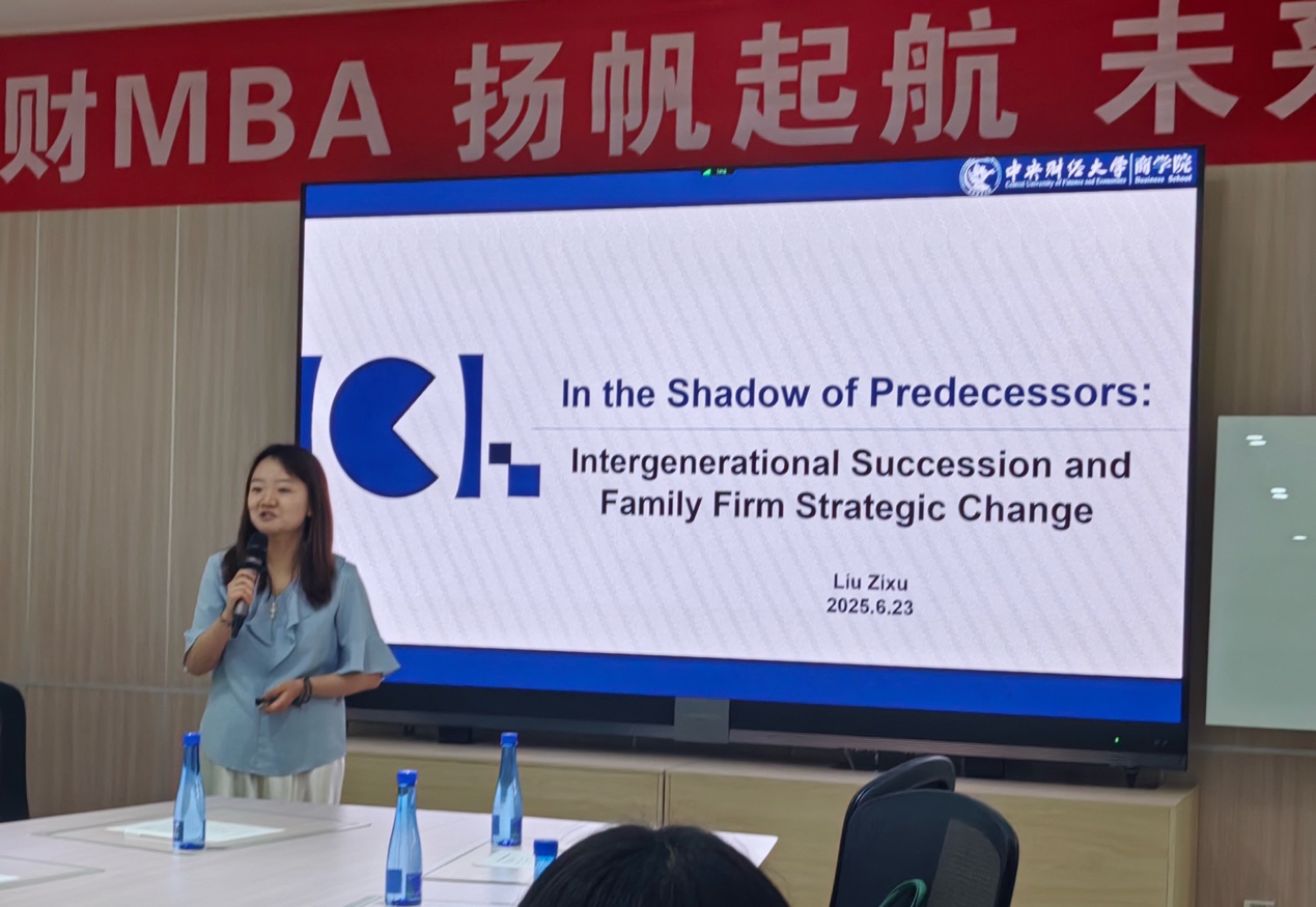 中央财经大学商学院财务与金融系主任、副教授张光利分享了论文《how government finance quantity and quality affect regional entrepreneurship: evidence from chinese local governments》,研究发现较低的财政收入质量与较高的财政压力都会导致地区创业活跃度降低,有助于深化关于地区财政状况与创业行为之间联系的讨论。中央财经大学商学院战略系助理教授刘子諝分享了《in the shadow of predecessors: intergenerational succession and family firm strategic change》,研究发现家族企业代际传承中的前任权威会减少战略变革,为前任权威负面影响的关键条件提供了新的视角。