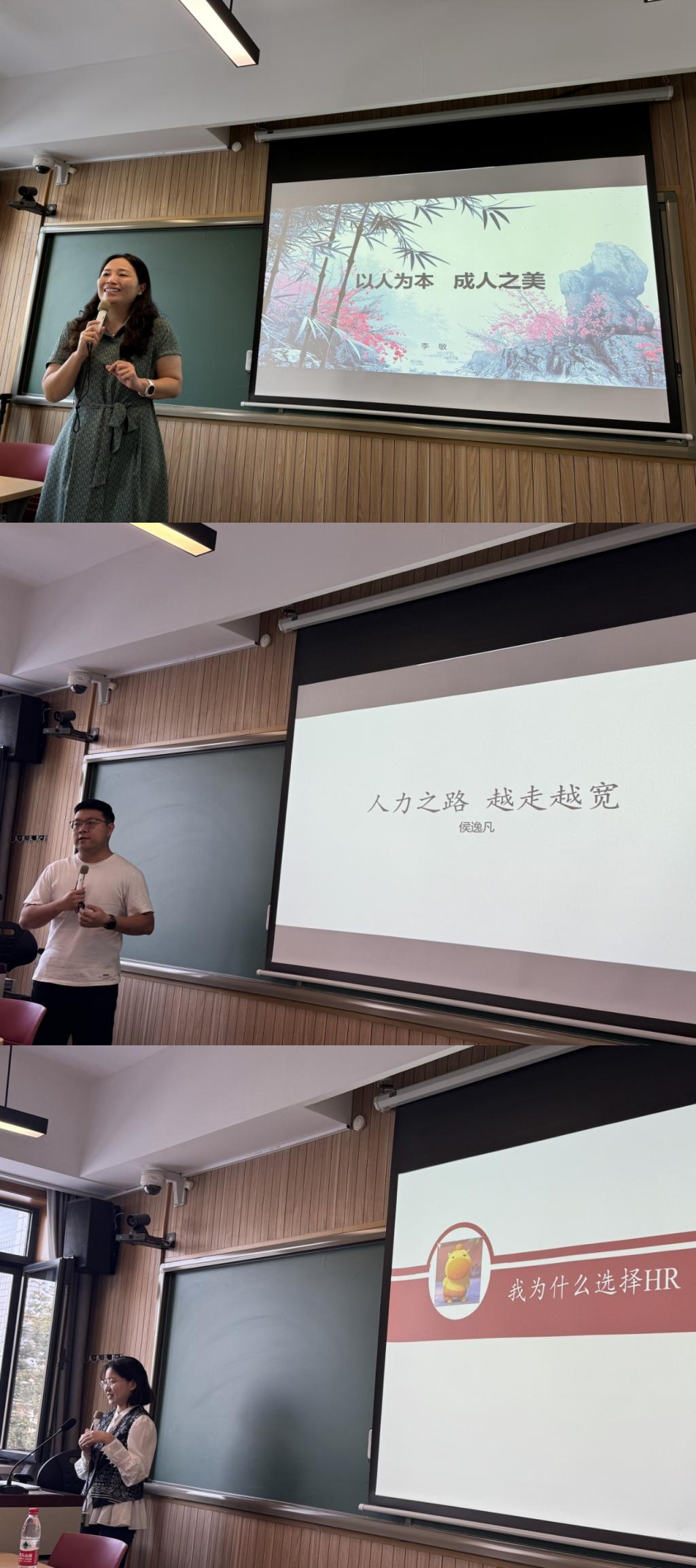 在校友分享环节,2002级人力资源管理专业本科毕业生李敏率先以“以人为本,成人之美”为主题展开分享。李敏校友拥有7年金融央企人力资源部工作经历及13年北京市级组织部门工作经验,具备丰富的跨领域hr实践经验。她从个人职业溯源切入,强调“严谨务实、注重细节”的职业态度。结合在央企与北京市委组织部的工作经历,李敏校友提出“专业并非职业发展的唯一限定,以人为本的思维习惯与持续学习能力更为关键”的观点,指出hr工作的核心价值在于“关注个体需求、助力人才成长、推动组织发展”,鼓励同学们树立“成人之美”的职业理念,将个人发展融入组织进步与社会价值创造之中。