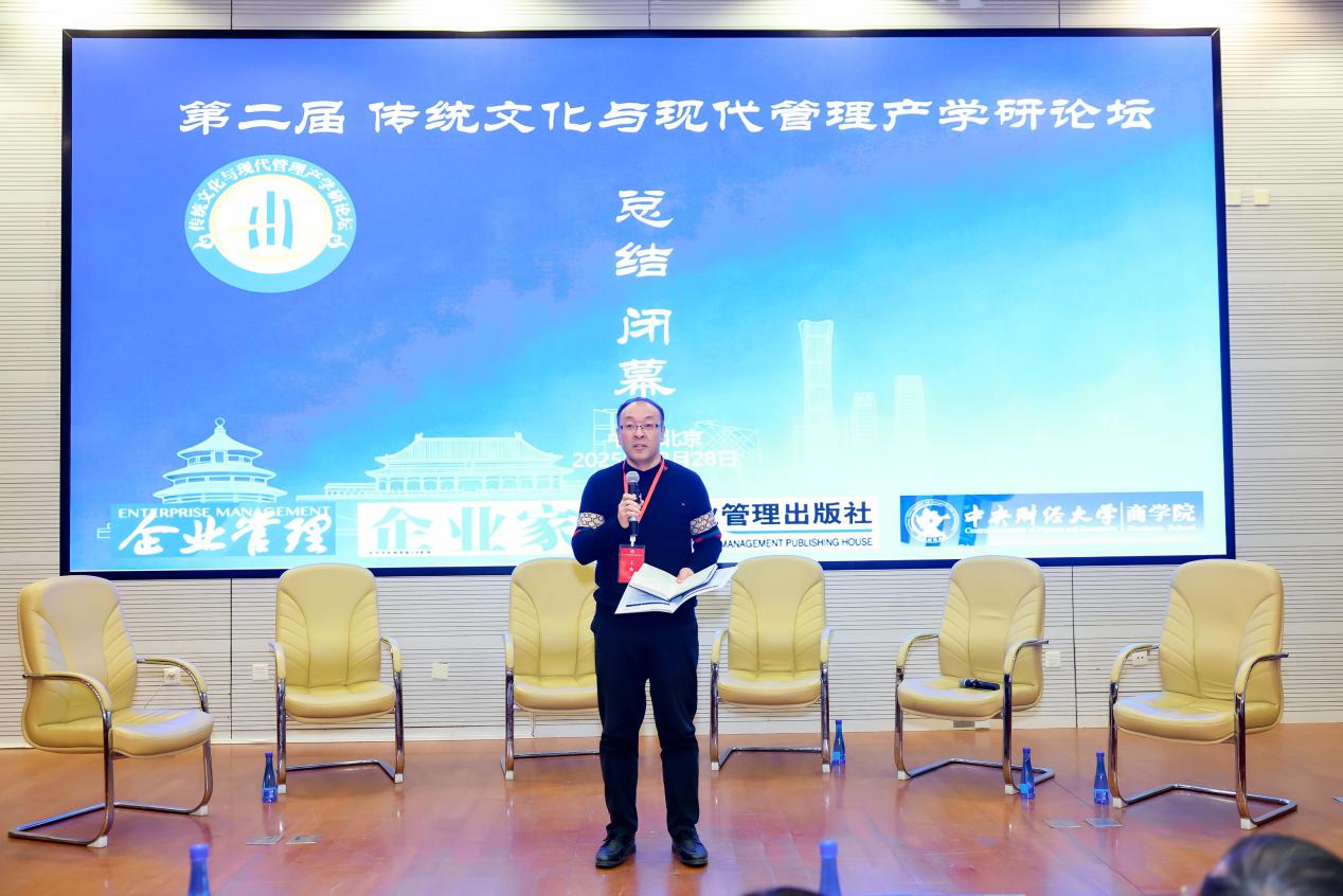 活动最后,天津商业大学管理学院院长、教授王庆对论坛作了总结,并表示天津大学商学院将承办第三届传统文化与现代管理产学研论坛,诚邀相关领域产学研各界的专家学者、企业家和有志于弘扬中华优秀传统文化的各界人士出席大会。