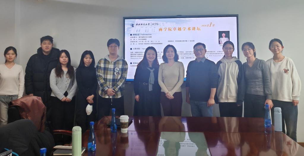 讲座由中央财经大学商学院助理教授刘子謂主持。活动伊始,刘子謂助理教授向与会者介绍了张思副教授的学术与编辑背景。张思副教授现任中国科学院大学经济与管理学院副教授,曾于清华大学完成博士后研究,并获英国雷丁大学硕士与经济学博士学位。她兼任《管理评论》编辑部副主任、中国企业管理研究会国际商务专业委员会副主任委员兼秘书长、清华大学技术创新研究中心研究员、中国科学学与科技政策研究会理事等职务。研究方向主要为技术创新经济学、国际商务与战略,以第一作者或通讯作者身份在《technological forecasting and social change》《ieee transactions on engineering management》《r&d management》等ssci一区期刊及国内核心期刊发表论文10余篇,多篇被中国人民大学复印报刊资料收录。