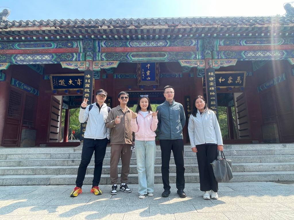 活动当天北京晴空万里,阳光明媚,早上校友们齐聚在地铁站口,怀揣着对自然的向往和相互交流的渴望,准时集合。上午九点徒步队伍正式出发,沿着蜿蜒的山路开始攀登。一路上,大家欢声笑语,相互交流和鼓励,气氛热烈而和谐。上山途中经过了千灵山的诸多古迹,如观音洞、文殊庵、极乐洞等,这些古迹不仅承载着千灵山的历史。经过两个多小时的攀登,队伍成功登顶。站在山顶,视野豁然开朗,远处的城市风光尽收眼底,令人心旷神怡。