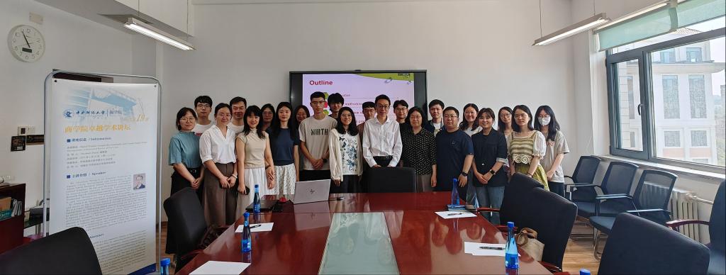 on the morning of june 23, 2025, cufe business school successfully held the 19th session of 2025 excellent academic forum in conference room 615 of the main teaching building at the xueyuan south road campus. associate professor abraham zhang, specializing in supply chain management and technology from the adam smith business school of the university of glasgow (uk), was specially invited as the keynote speaker. more than 20 participants attended this academic event, including teachers, doctoral students, master’s students of cufe business school, and scholars from other universities.
