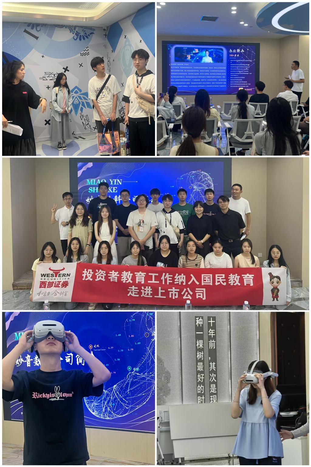theme of the activity is "industry-leading practical training in the securities sector". in the morning of june 30, yin tao, chairman of the wealth business decision-making committee, chairman of the credit business decision-making committee, and assistant general manager of western securities co., ltd., delivered a welcome speech. zheng feng, general manager of the capital markets department, attended the event and encouraged students to learn actively and broaden their horizons. subsequently, ma jiguang (an alumnus of cufe), co-head of the investment banking quality control department, gave a special lecture titled ipo listing strategy and path selection for enterprises. chen song, a senior investment consultant at the xueyuan south road business department in beijing, shared an interpretation of the securities market supervision system. on june 30, teachers and students visited miaoyin digital technology (a listed company) in person. they gained an in-depth understanding of the company’s operation and management, experienced cutting-edge ar technology, and discussed issues related to ai alienation with the company’s professionals.