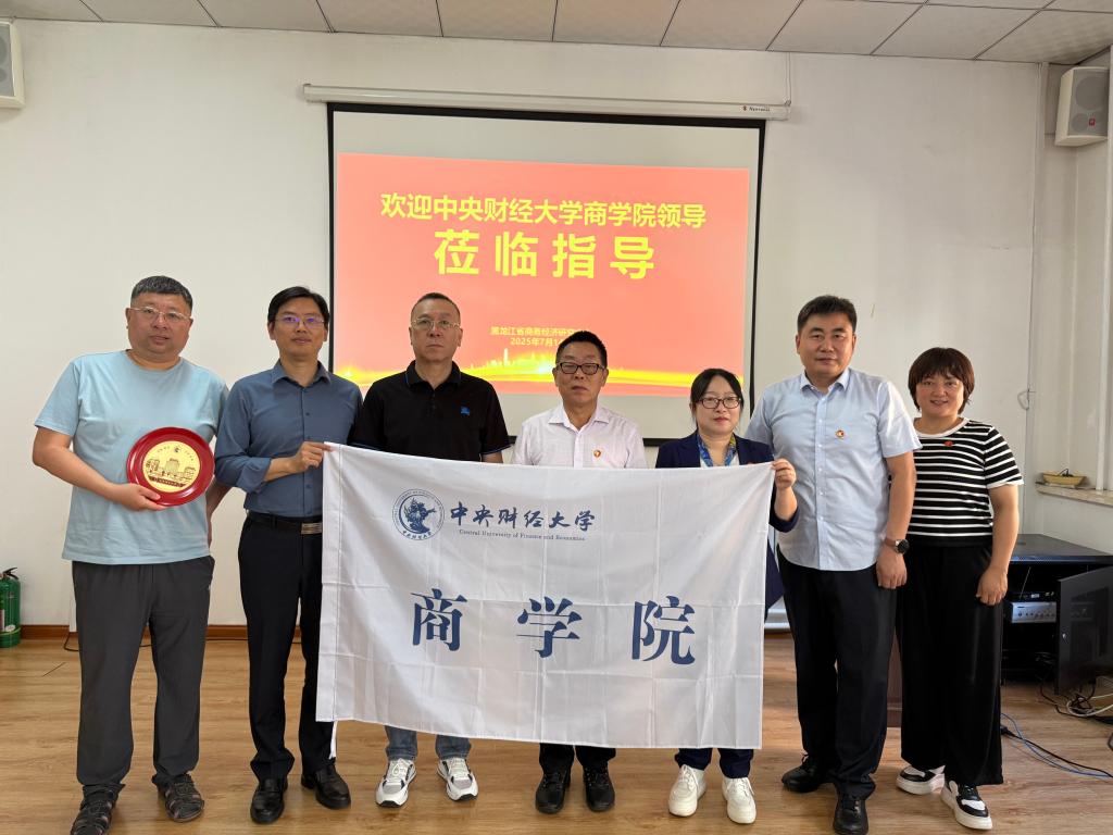 on july 14, 2025, a delegation from cufe business school, including li yuexin (secretary of the party committee), yang zhongying (deputy secretary of the party committee), kong weiming (director of the mba student affairs department), and qi yan (director of the postgraduate affairs office of the business school), visited the heilongjiang provincial business and economic research center. the delegation aimed to visit teacher chen jinliang, who is on a temporary assignment as deputy director at the center, and conduct exchange discussions.