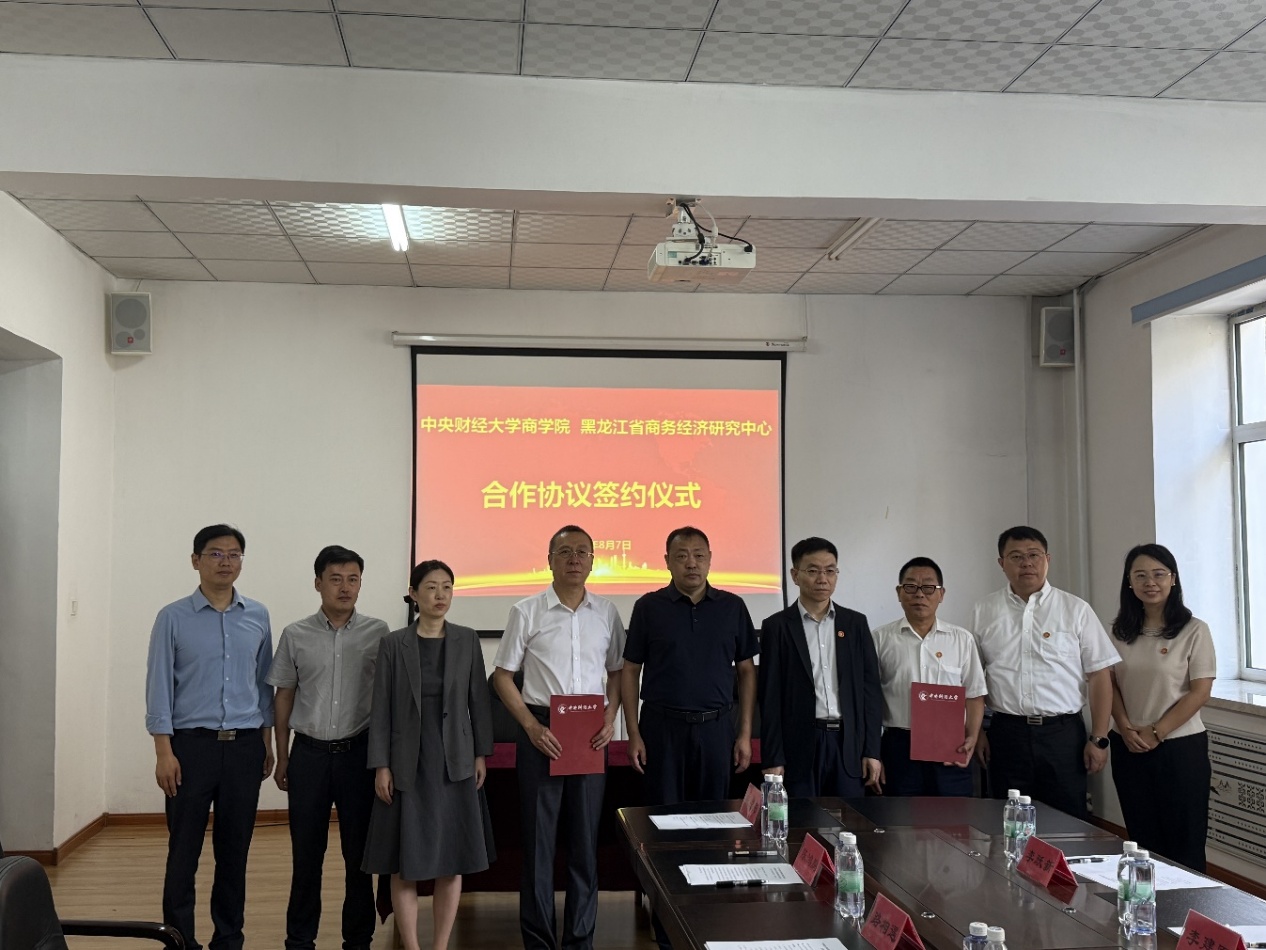on the morning of august 7, the cooperation agreement signing ceremony between cufe business school and heilongjiang provincial business and economic research center was held at the office area on gexin street of heilongjiang provincial department of commerce. with the theme of "jointly building a high-level research platform and think tank support mechanism, promoting the implementation of achievements through project-based operations, and creating a model for university-government collaborative development", the signing event gathers the innovative momentum of "government-industry-academia-research" integration and joins hands to open a new chapter of complementary advantages and win-win cooperation!