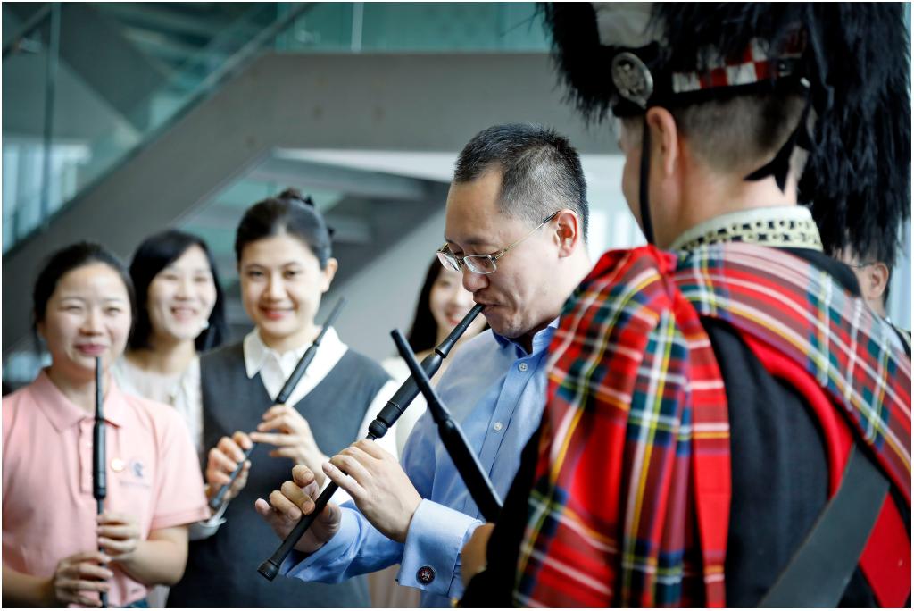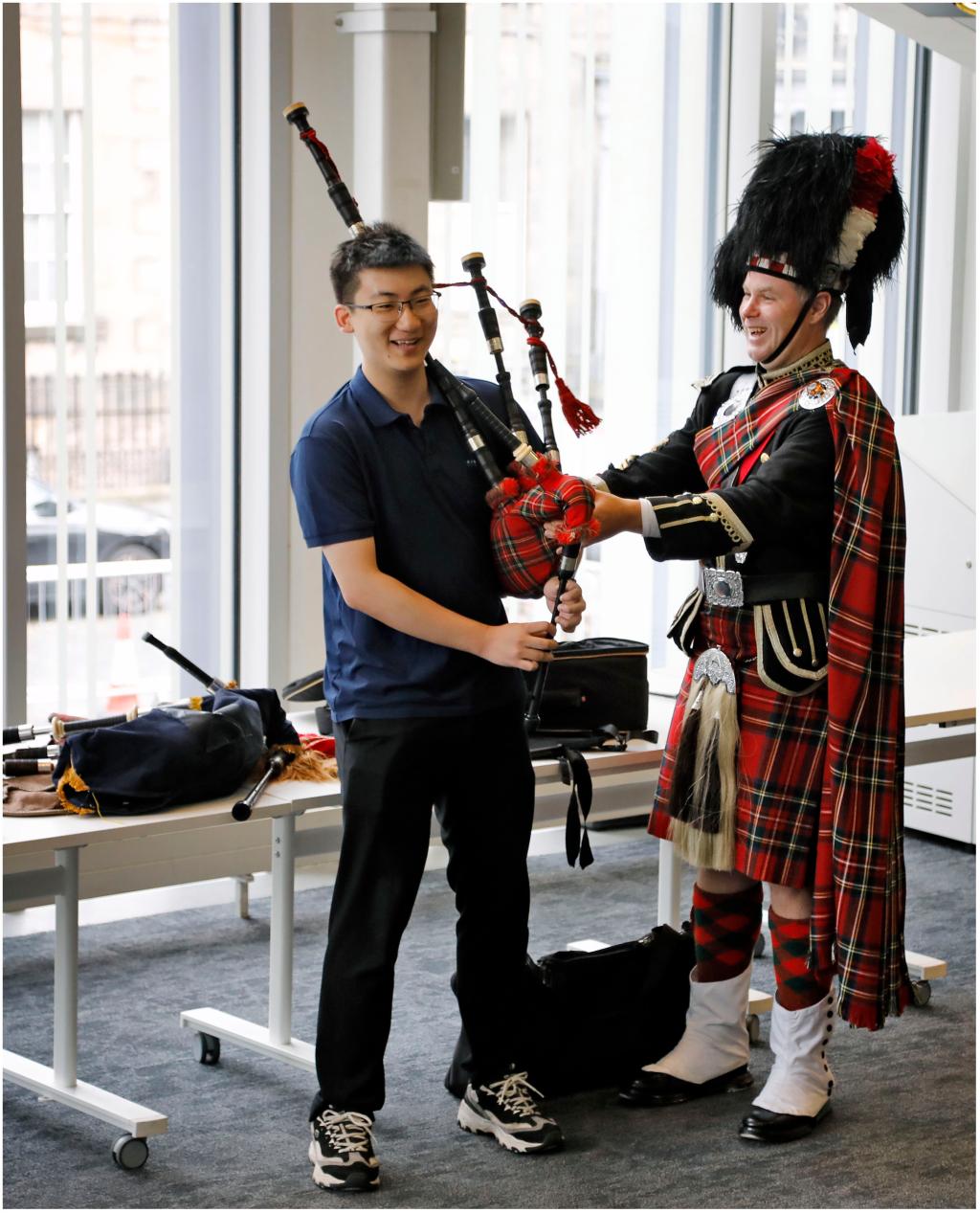 at the welcome dinner held at st leonard's college, the students learned scottish traditional dances to the rhythm of the musicians, experiencing scottish folk customs in an immersive way; in the scottish traditional musical instrument - bagpipe experience session, under the patient guidance of the bagpiper, the teachers and students tried to hold the bagpipe tube and feel the coordination between breath and melody. although their first attempt was a bit awkward, they truly touched the soul of scottish culture through the interaction.