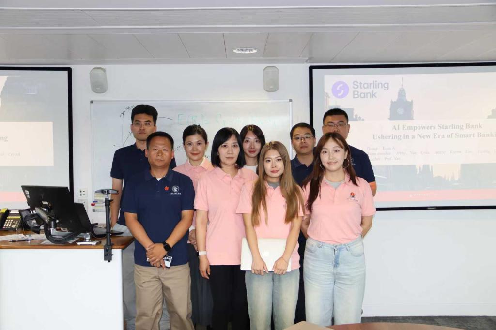 in the subsequent courses, the "professor team" of the university of edinburgh business school each demonstrated their expertise: dr. adam ntakaris focused on the theme of "generative ai and large language models", and specially invited senior engineers from huawei to give cross-boundary sharing, in-depth analyzing the implementation path of ai technology in corporate customer service and risk prevention and control, effectively breaking the barrier between academic theory and industrial practice; professor raluca bunduchi, with "strategic leadership in the ai era" as the core, innovatively launched a workshop on "organizational ai readiness assessment", guiding students to design preliminary digital transformation plans based on the actual scenarios of their own enterprises, realizing the transformation of theoretical knowledge into practical solutions.