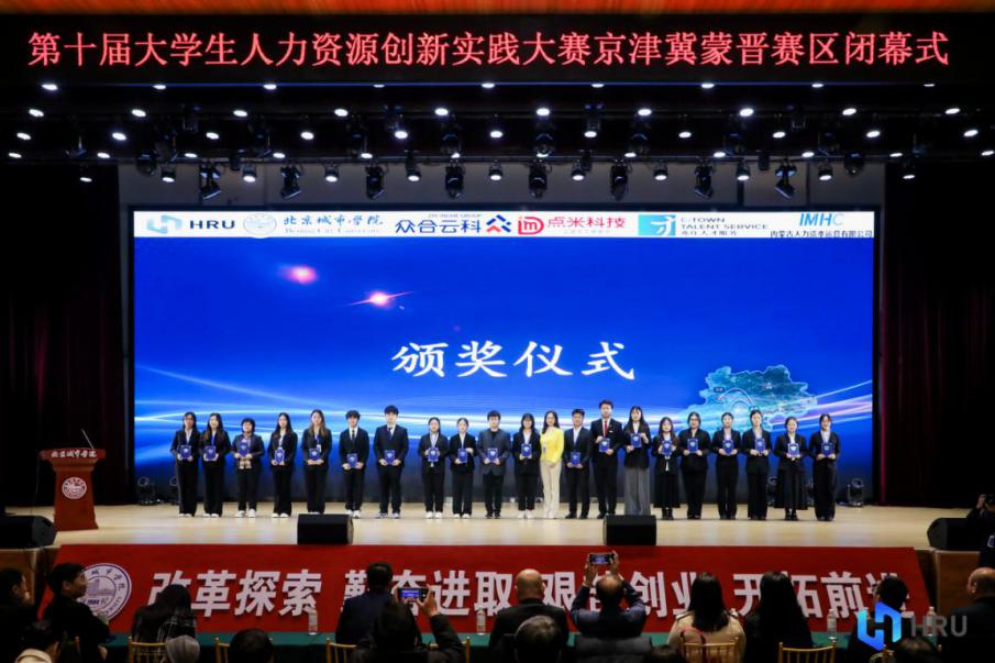 from october 25 to 26, 2025, the beijing-tianjin-hebei-inner mongolia-shanxi division of the 10th china university students human resource innovation and practice competition (hru) was grandly held at beijing city university. the team composed of undergraduate students from our school actively participated in the competition and won the group special award, along with 3 individual special awards, 6 individual first awards, and 1 individual second award.