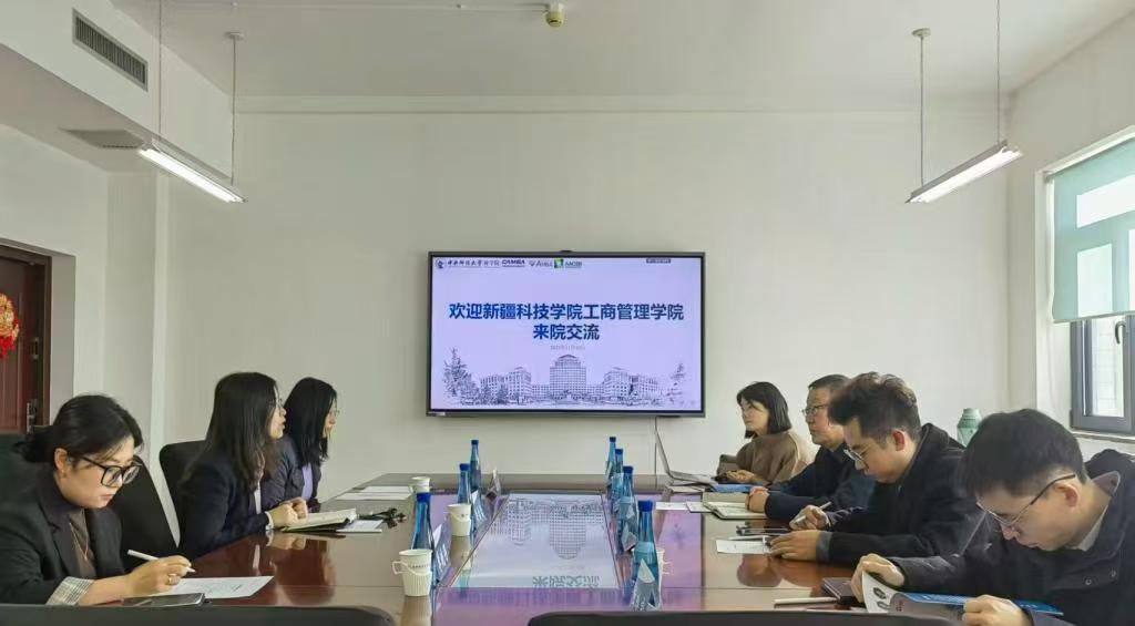 on the morning of november 10, 2025, a delegation consisting of liu zhilin, dean of the school of business administration of xinjiang college of science & technology, xu zhiqiang, deputy director of the big data management and application teaching and research section, xu qian, deputy director of the big data management and application teaching and research section, and zhang lingfu, a full-time teacher of the marketing teaching and research section, paid a visit to the business school for exchange. gu leilei, vice dean of cufe business school and director of the marketing department, gao yongling, director of the industry-education integration project and professor of the supply chain and operations management department, and ji xiaode, assistant professor of the organization and human resource management department, attended the exchange forum.