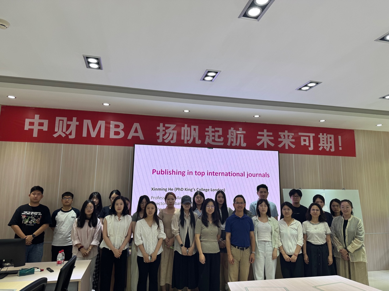2025年6月24日(周二)上午,中央财经大学商学院在学院南路校区mba中心成功举办了商学院卓越学术讲坛2025年第十八期讲座。本次讲座邀请了杜伦大学xinming he教授作为主讲嘉宾。商学院的教师、博士和硕士研究生参加了此次活动。讲座由中央财经大学商学院市场营销系主任顾雷雷教授主持。在讲座开始前,顾老师简要介绍了xinming he老师的履历。xinming he老师博士毕业于英国国王学院king’s college london,他是英国杜伦大学(durha...