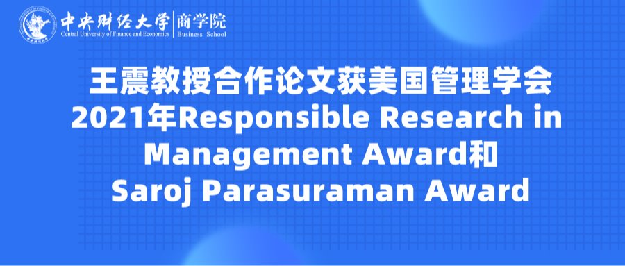 商学院王震教授合作论文获美国管理学会2021年responsible research in management award和saroj parasuraman award